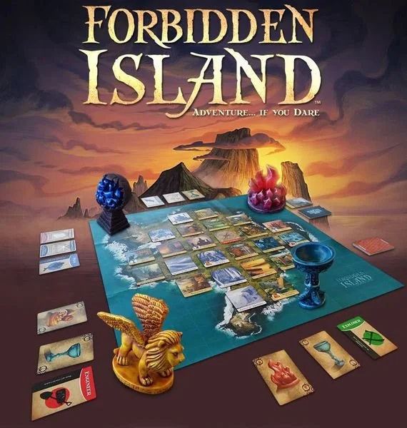 Let’s talk about Matt Leacock’s other popular cooperative game that is not part of the Pandemic series. We have Forbidden Island which is another game that requires all players to work together to defeat the game. Forbidden Island is a visually stunning board game where players take turns moving their pawns around the 'island', which is built by arranging the many beautifully screen-printed tiles before play begins. As the game progresses, more and more island tiles sink, becoming unavailable, and the pace increases. Players use strategies to keep the island from sinking, while trying to collect treasures and items to escape from the island to win.